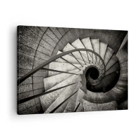 Impression sur toile - Image sur toile - Escalier en colimaçon noir et blanc de style moderne - 70x50cm - En haut des escaliers, en bas des escaliers - Décoration murale moderne pour le salon et la chambre ARTTOR