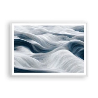 Affiche dans un cadre blanc - Poster - Vagues blanches et bleues - 100x70 cm