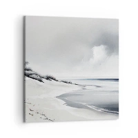 Impression sur toile - Image sur toile - Une plage aux tons sobres de gris et de bleu - 100x70cm - Ensemble depuis toujours - Décoration murale moderne pour le salon et la chambre ARTTOR