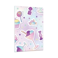 Impression sur verre - Image sur verre - Motif de bonbons colorés sur fond pastel - 50x70cm - Pour que tous les jours soit un anniversaire - Décoration murale moderne pour le salon et la chambre ARTTOR