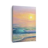 Papier Peint Photo Premium Canvas - Paysage marin avec coucher de soleil - 100x70cm - Le chant turquoise des vagues - Décoration murale moderne pour le salon et la chambre ARTTOR
