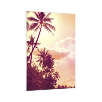 Impression sur verre - Image sur verre - Palmiers illuminés par le soleil couchant dans un ciel tropical - 70x100cm - Tu dois choisir - Décoration murale moderne pour le salon et la chambre ARTTOR