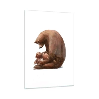 Impression sur verre - Image sur verre - Une mère ourse serrant dans ses bras deux petits oursons - 50x70cm - Faites de beaux rêves les enfants - Décoration murale moderne pour le salon et la chambre ARTTOR