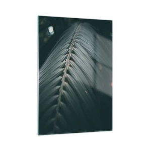 Impression sur verre - Image sur verre - Gros plan d'un détail de feuille de palmier aux tons sombres - 80x120cm - Précision de la nature - Décoration murale moderne pour le salon et la chambre ARTTOR