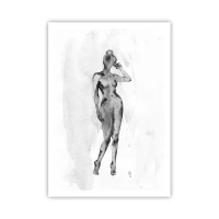 Impression sur verre - Image sur verre - Croquis d'une silhouette de femme en nuances de gris - 70x100cm - Etude de l'idéal de la féminité - Décoration murale moderne pour le salon et la chambre ARTTOR