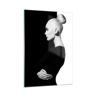 Impression sur verre - Image sur verre - Portrait noir et blanc d'une femme portant un chignon élégant - 50x70cm - Tout simplement une femme - Décoration murale moderne pour le salon et la chambre ARTTOR