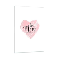 Impression sur verre - Image sur verre - Un cœur rose avec les mots « Meilleure maman » sur fond blanc - 50x70cm - Toujours au bon moment - Décoration murale moderne pour le salon et la chambre ARTTOR