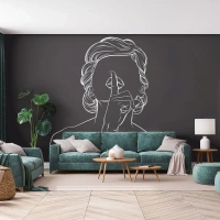 Papier Peint Photo Standard Eco - Dessin au contour d'une femme sur fond noir faisant un geste de silence - 100x70cm - La beauté s'épanouit en silence - Décoration murale moderne pour le salon et la chambre ARTTOR