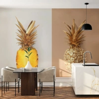 Papier Peint Photo Standard Eco - Un demi-ananas et un ananas doré sur un fond fendu - 100x70cm - Ananas pour nous - Décoration murale moderne pour le salon et la chambre ARTTOR