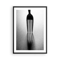 Affiche dans un cadre noir - Poster - Une photographie minimaliste en noir et blanc d'une fourchette et d'une ombre. - 50x70cm - Lumière et ombre - Décoration murale moderne pour le salon et la chambre ARTTOR