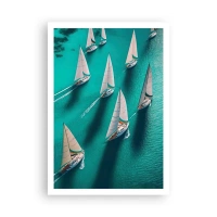 Impression sur verre - Image sur verre - Yachts sur l'eau turquoise en mouvement dynamique - 70x100cm - Dans une compétition avec le vent - Décoration murale moderne pour le salon et la chambre ARTTOR