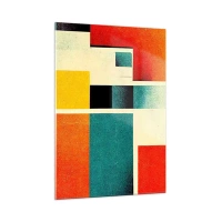 Impression sur verre - Image sur verre - Rectangles géométriques colorés de style rétro - 50x70cm - Abstraction géométrique – bonne énergie - Décoration murale moderne pour le salon et la chambre ARTTOR