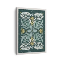 Impression sur toile - Image sur toile - Motif végétal symétrique sur fond vert - 50x70cm - Comme une découpe folklorique - Décoration murale moderne pour le salon et la chambre ARTTOR