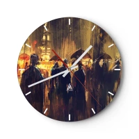 Horloge murale - Pendule murale - Personnages avec des parapluies dans une ville pluvieuse la nuit - 30x30cm - Adeptes de la pluie - Décoration murale moderne pour le salon et la chambre ARTTOR