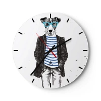 Horloge murale - Pendule murale - Un chien avec des lunettes et une chemise de marin - 30x30cm - Un charme de chien - Décoration murale moderne pour le salon, la cuisine et la chambre ARTTOR