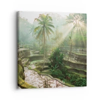 Horloge murale - Pendule murale - Rizières en terrasses avec palmiers sous les rayons du soleil - 30x30cm - Grandir au soleil - Décoration murale moderne pour le salon et la chambre ARTTOR
