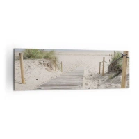 Impression sur toile - Image sur toile - Un chemin de planches menant à une plage de sable - 160x50cm - A l'horizon - Décoration murale moderne pour le salon et la chambre ARTTOR