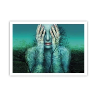 Affiche - Poster - Une figure de femme avec un motif d'arbre sur un fond de paysage turquoise - 100x70cm - immergé dans l'azur - Décoration murale moderne pour le salon et la chambre ARTTOR