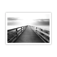 Affiche - Poster - Une image en noir et blanc d'une jetée en bois menant vers l'horizon. - 100x70cm - A perte de vue... - Décoration murale moderne pour le salon et la chambre ARTTOR