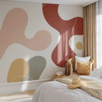 Papier Peint Photo Standard Eco - Formes organiques abstraites aux couleurs chaudes - 100x70cm - Entrelac - Décoration murale moderne pour le salon et la chambre ARTTOR