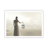 Affiche - Poster - Une femme avec une cage contre un ciel calme - 100x70cm - Soi libre - Décoration murale moderne pour le salon et la chambre ARTTOR