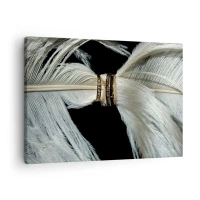 Impression sur toile - Image sur toile - Une plume blanche avec deux anneaux d'or sur fond noir - 70x50cm - ... et je ne te laisserai pas ... - Décoration murale moderne pour le salon et la chambre ARTTOR