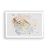 Affiche - Poster - Un délicat motif de feuille dorée sur un fond pastel avec des détails aquarelles. - 100x70cm - Explosion d'or - Décoration murale moderne pour le salon et la chambre ARTTOR