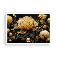 Affiche - Poster - Fleur dorée sur fond sombre - 100x70cm - Fragilité subtile - Décoration murale moderne pour le salon et la chambre ARTTOR