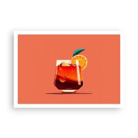Affiche - Poster - Un verre de boisson et une tranche d'orange sur un fond orange - 100x70cm - Rafraîchissement d'été - Décoration murale moderne pour le salon et la chambre ARTTOR