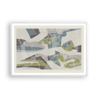 Affiche - Poster - Formes abstraites en vert et bleu sur fond clair - 100x70cm - Composition derrière la vitre - Décoration murale moderne pour le salon et la chambre ARTTOR