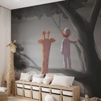 Papier peint sur mesure Standard Eco - Cela arrive vraiment - Girafe, Enfants, Rêve
