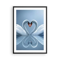 Affiche dans un cadre noir - Poster - Cygnes en forme de cœur contre le ciel - 50x70cm - Le temps de l'amour - Décoration murale moderne pour le salon et la chambre ARTTOR