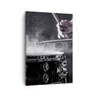 Impression sur toile - Image sur toile - Frapper la caisse claire avec des baguettes avec un effet de poussière - 50x70cm - Tempo de la musique - Décoration murale moderne pour le salon et la chambre ARTTOR