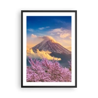 Affiche dans un cadre noir - Poster - Le mont Fuji entouré de cerisiers en fleurs au coucher du soleil - 50x70cm - Sainteté japonaise - Décoration murale moderne pour le salon et la chambre ARTTOR