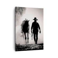 Impression sur toile - Image sur toile - Cowboy avec cheval dans le brouillard matinal - 50x70cm - Matinée texane - Décoration murale moderne pour le salon et la chambre ARTTOR