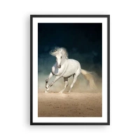Affiche dans un cadre noir - Poster - Un cheval blanc galopant sur le sol sablonneux - 50x70cm - La liberté à l'état pur - Décoration murale moderne pour le salon et la chambre ARTTOR