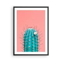 Affiche dans un cadre noir - Poster - Cactus turquoise sur fond rose - 50x70cm - Juste regarde - Décoration murale moderne pour le salon et la chambre ARTTOR
