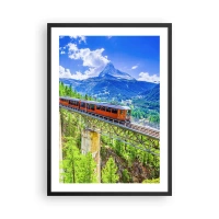 Affiche dans un cadre noir - Poster - Un train sur un pont dans les Alpes avec vue sur le Cervin - 50x70cm - Train dans les Alpes - Décoration murale moderne pour le salon et la chambre ARTTOR