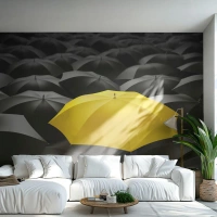 Papier peint sur mesure Standard Eco - Adieu chagrin - Parapluies jaunes, Graphique, Concept
