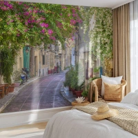 Papier peint sur mesure Standard Eco - Allée fleurie - Architecture, Grèce, Ville