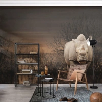 Papier peint sur mesure Standard Eco - Blanc contre nature - Rhinocéros, Animaux, Afrique