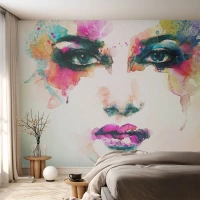 Papier Peint Photo Standard Eco - Un portrait peint avec un arc-en-ciel - Abstraction, Visage de femme, Morceau - 250x175 cm