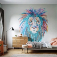 Papier Peint Photo Premium Canvas - Aura électrique - Animaux, Lion, Abstraction - 200x140 cm