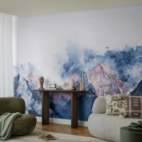 Papier Peint Photo Premium Canvas - Montagnes à l'aquarelle dans des tons pastel sur fond blanc - 100x70cm - Ce sont des sommets ! - Décoration murale moderne pour le salon et la chambre ARTTOR
