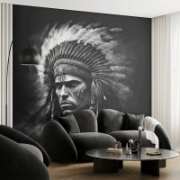 Papier Peint Photo Premium Canvas - Un leader et un guerrier - Indien, Tribus, Ethnique - 400x280 cm