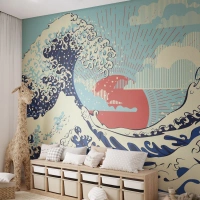 Papier Peint Autocollant Deluxe Sticker - D'une inspiration japonnaise - Abstraction, Vague de mer, Mer - 350x256 cm