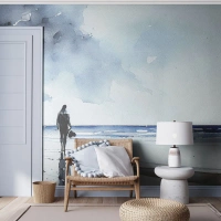 Papier Peint Photo Premium Sand - Conversation avec la mer - Solitaire, Homme, Côte - 300x210 cm