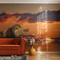 Papier Peint Photo Standard Eco - Le roi de la nature - Lion, Coucher de soleil, Animaux - 500x350 cm