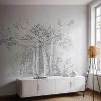 Papier Peint Autocollant Deluxe Sticker - Lumière d'une forêt de bouleaux - Forêt, Bouleau, Des arbres - 250x175 cm