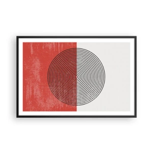 Affiche dans un cadre noir - Poster - Motif géométrique avec des cercles concentriques sur un fond rouge et blanc - 100x70cm - Dans le mille - Décoration murale moderne pour le salon et la chambre ARTTOR
